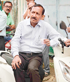 ভোটের ফাঁকে। শিলিগুড়ি গার্লস স্কুলের সামনে গৌতম দেব। ছবি: রাজকুমার মোদক।