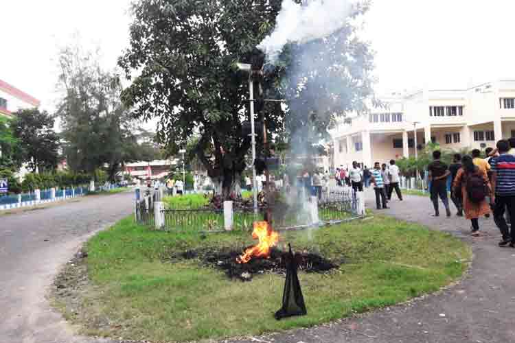 গত বৃহস্পতিবার থেকে একাধিক দাবি জানিয়ে উপাচার্যের অফিসের সামনে ধর্নায় বসেন বিশ্ববিদ্যালয়ের একদল ছাত্রছাত্রী। তাঁদের প্রধান দাবির মধ্যে ছিল, এগ্রিকালচার বিভাগের ডিন শ্রীকান্ত দাস এবং ডিন অব স্টুডেন্টস ওয়েলফেয়ার গৌতম চক্রবর্তীর অবিলম্বে অপসারণ। আন্দোলনকারী ছাত্রছাত্রীরা এই দু’জনের বিরুদ্ধেই একাধিক অনিয়মের অভিযোগ তুলেছেন।