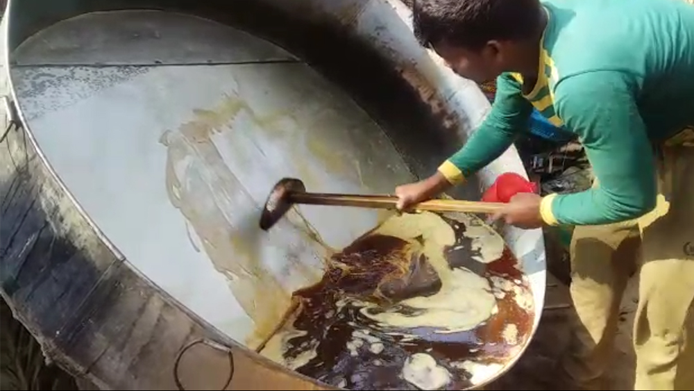 আঁচে ফোটানোর পর তৈরি গুড়। নিজস্ব চিত্র