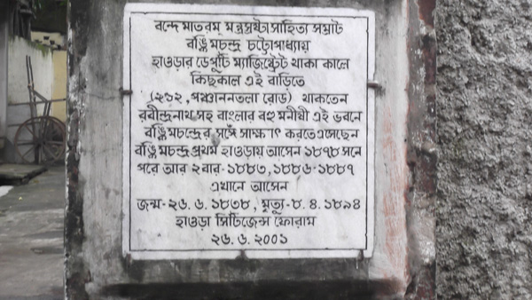 প্রাচীন পঞ্চানন মন্দির থেকে নামকরণ পঞ্চাননতলা রোডের। এই রাস্তা থেকে একটু ভিতরে ২১২ নম্বর বাড়ি। প্রবেশপথের মুখে শ্বেতপাথরের ফলক। হাওড়া সিটিজেন্স ফোরামের উদ্যোগে ২০০১-এর ২৬ জুন, অর্থাৎ বঙ্কিমচন্দ্রের জন্মদিবসে এটি স্থাপিত হয়। ফলকে লেখা ‘বন্দেমাতরম স্রষ্টা সাহিত্য সম্রাট’ এই বাড়িতে কিছু কাল ছিলেন। তাঁর সঙ্গে এই বাড়িতে রবীন্দ্রনাথ ঠাকুর-সহ কয়েক জন মণীষী দেখা করতে এসেছিলেন। হাওড়ায় তাঁর বসবাস কাল এবং জন্ম-মৃত্যুর তারিখও খোদিত। ঠিক এরই পাশে, ২১৮ নম্বর বাড়িতেও কিছু কাল কাটান তিনি।