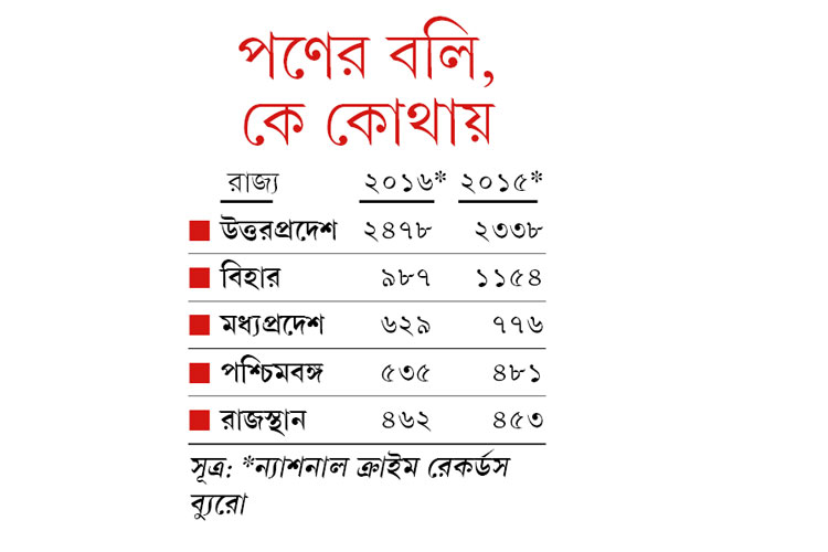 মেয়ে সংসারে সুখ পান না। ছোবল মারে আরও পণের দাবি। অসহায় মেয়ে আশ্রয় পান না বাপেরবাড়িতে। গুরুত্ব পায় না তাঁর অভিযোগ। শুনতে হয়, ‘মানিয়ে নে’! মেয়ে ফিরে যান শ্বশুরবাড়ি। এক সময়ে সহ্য ক্ষমতা শেষ হয়। আর তার পরেই সংবাদের শিরোনাম হয়ে ওঠে, ‘পণ দিতে না-পারায় বধূ আত্মঘাতী’ বা ‘পণের জন্য বধূ খুন’!