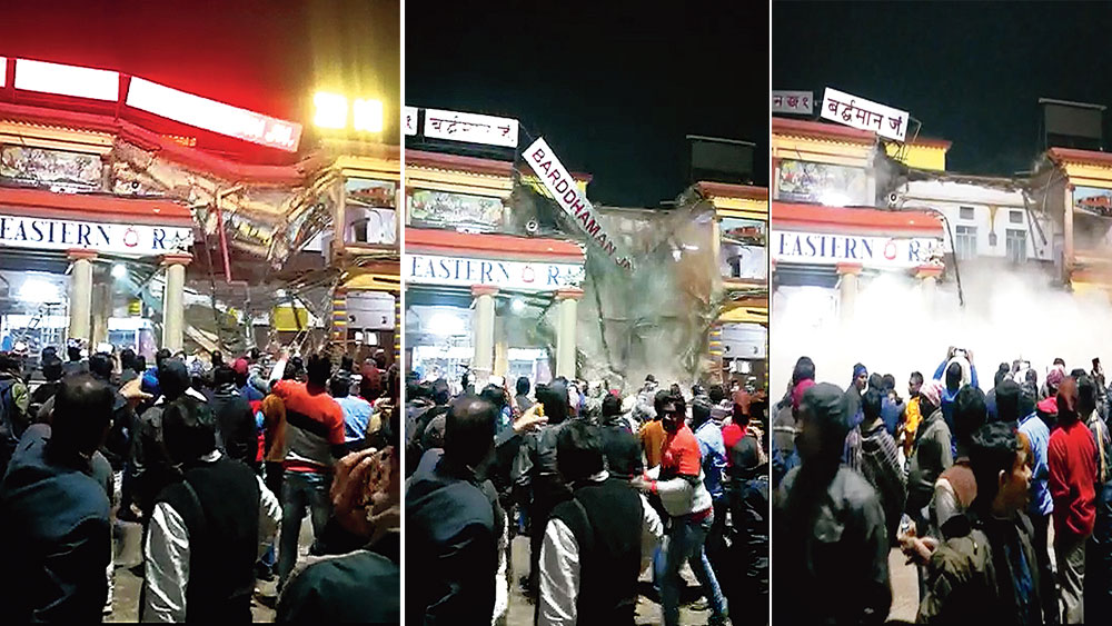 স্টেশন ভবনের একাংশ ভেঙে পড়ার বিভিন্ন মুহূর্ত। নিজস্ব চিত্র