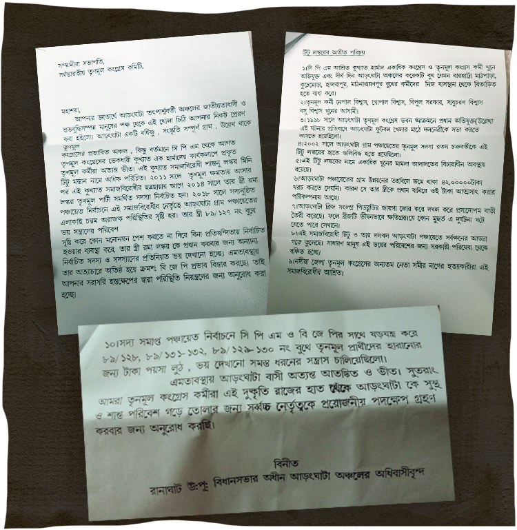 বিধায়ক টিটু লস্করের পাশে রয়েছেন বলে টিটু-বিরোধীরা হাল ছেড়ে দিয়েছেন, এমন কিন্তু নয়। দলের জেলা নেতৃত্বের কাছে অভিযোগ জানানো হয়েছে। চিঠি দেওয়া হয়েছে দলের মহাসচিব তথা নদিয়া জেলা তৃণমূলের পর্যবেক্ষক পার্থ চট্টোপাধ্যায়কে। খোদ মমতা বন্দ্যোপাধ্যায়ের কাছেও চিঠি পাঠানো হয়েছে বলে স্থানীয় তৃণমূল সূত্রে জানা গিয়েছে।