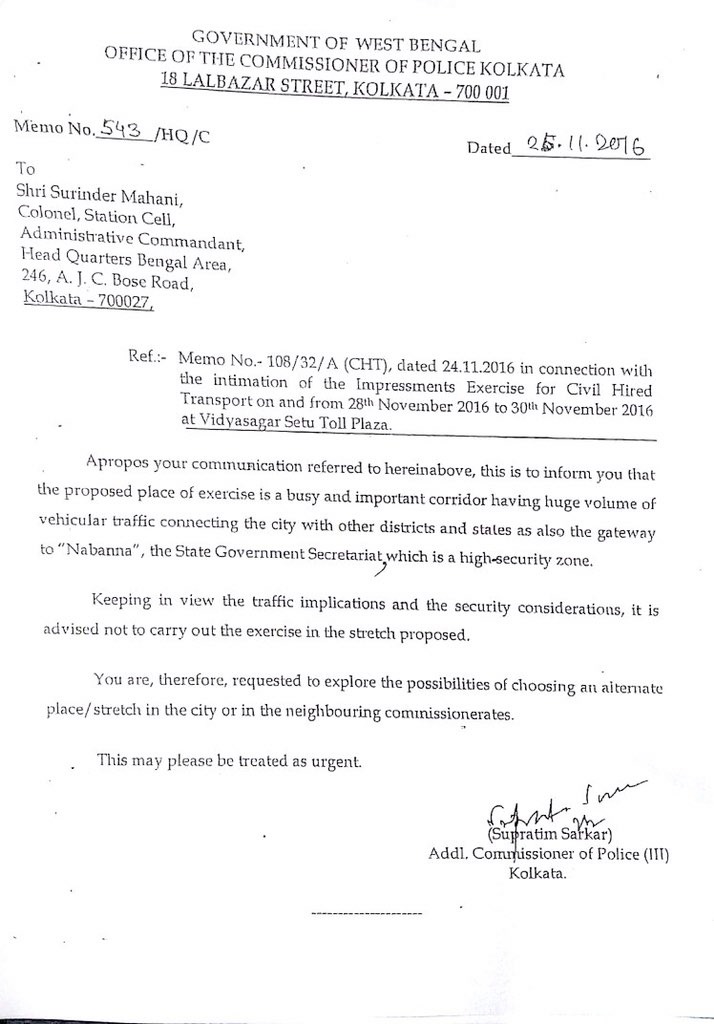 সেনাকে লেখা লালবাজারের সেই চিঠি।