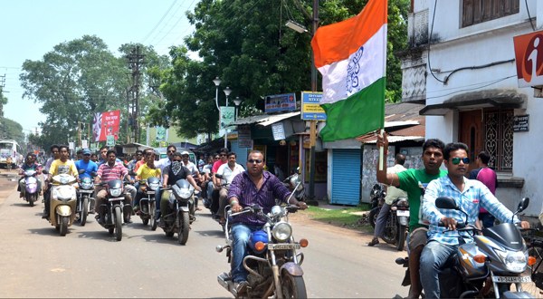 মেদিনীপুর শহরে তৃণমূলের বাইক বাহিনী। ছবি: সৌমেশ্বর মণ্ডল।