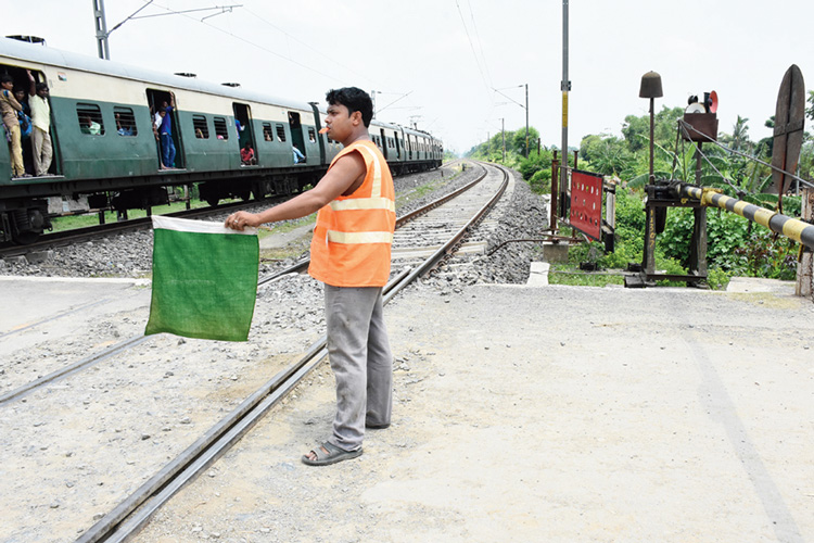 জিনগরের ভাঙা রেলগেটের কাছে প্রহরী মোতায়েন। নিজস্ব চিত্র