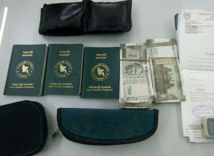 উদ্ধার হওয়া টাকা ও পাসপোর্ট। —নিজস্ব চিত্র।