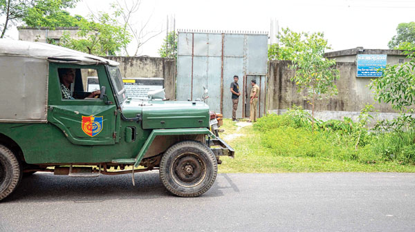 তিওড়ের হোমের সামনে পুলিশ প্রহরা। ছবি: অমিত মোহান্ত।