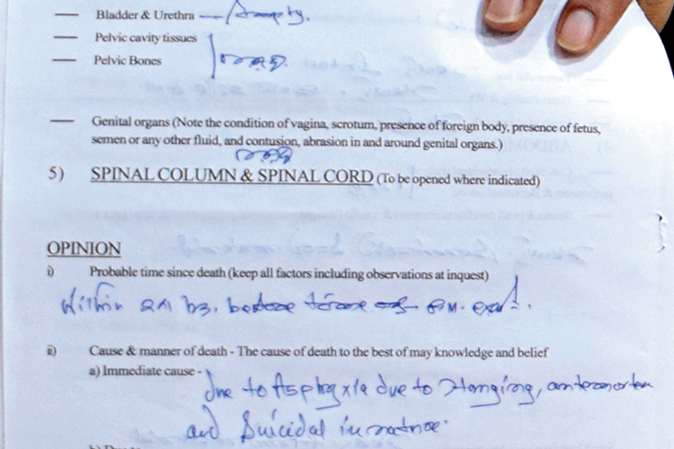 ময়না-তদন্ত রিপোর্ট। —নিজস্ব চিত্র।