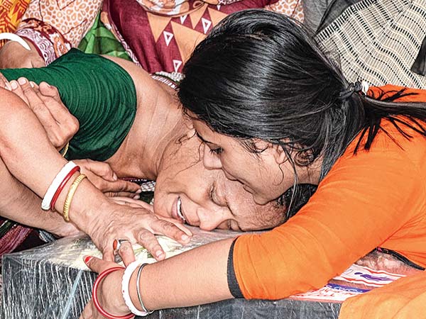বাবা সৌমেনবাবু, মা গীতাদেবী, ভাই অরুণাভ, স্ত্রী বিউটি কফিন আঁকড়ে পড়ে। সামলানো যাচ্ছিল না বিউটিকে। দিশাহারা দেখাচ্ছিল মন্ত্রী পার্থ চট্টোপাধ্যায়, জ্যোতিপ্রিয় মল্লিক, সাংসদ কাকলি ঘোষ দস্তিদার থেকে শুরু করে রাজ্য পুলিশের ডিজি সুরজিৎ পুরকায়স্থ, এডিজি (আইনশৃঙ্খলা) অনুজ শর্মার মতো পুলিশকর্তাদের। বাড়ি তৈরির ব্যাঙ্ক-ঋণ ঝুলছে মাথায়। তার কী হবে? পুলিশকর্তারা জানিয়ে দিয়েছেন, ‘‘এই পরিবারের সব দায়িত্ব আমাদের।’’