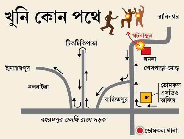 পুলিশের দাবি, বৃহস্পতিবার সকালে মিরশাদ ইয়ারকে সরিয়ে দিতে চেয়েছিল ডোমকল এসডিও মোড়েই। সেখানেই ইয়ার একটি দোকানে চা খাচ্ছিল। কিন্তু আচমকাই ইয়ার সেখান থেকে উঠে বাইকে সোজা চলে যান রমনা শেখপাড়ার মোড়ে। এসডিও অফিসের মোড় থেকে বাইকে পিছু নেয় মিরশাদও।