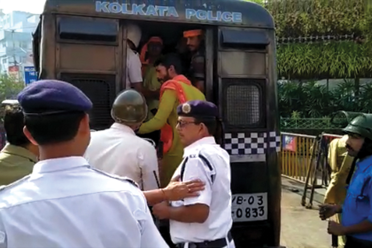 হিন্দু জাগরণ মঞ্চের সদস্যদের গ্রেফতার। নিজস্ব চিত্র
