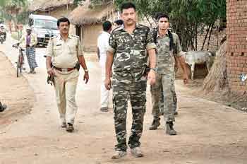 মাখড়ায় পুলিশি টহল। মঙ্গলবার বিশ্বজিৎ রায়চৌধুরীর তোলা ছবি।