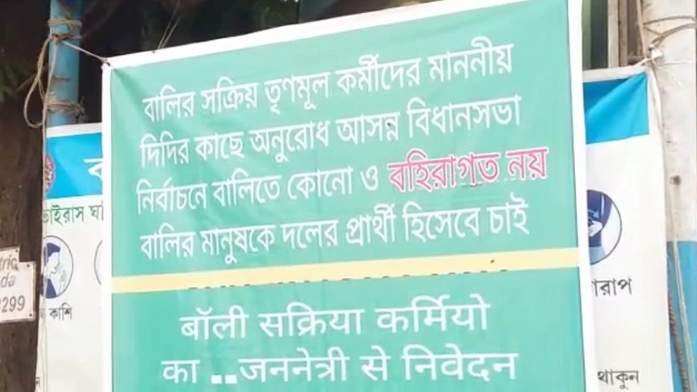 বহিরাগত ঢুকিয়ে বিজেপির বিরুদ্ধে রাজ্যে অশান্তি বাধানোর অভিযোগ তুলেছিল তৃণমূল। এ বার সেই তৃণমূলের অন্দরেই দানা বাঁধছে বহিরাগত বিতর্ক। আসন্ন বিধানসভা নির্বাচনে বহিরাগতদের বাদ দিয়ে জেলা জেলায় ভূমিপুত্রদের প্রার্থী করার দাবি উঠল হাওড়ায়। বালির বিধায়ক বৈশালী ডালমিয়াকে নিয়ে বেশ কিছুদিন ধরেই অসন্তোষ তৈরি হয়েছে স্থানীয় তৃণমূল নেতৃত্বের মধ্যে। এ বার বালিতে পোস্টার পড়ল স্থানীয়দের মধ্যেই কাউকে দলের প্রার্থী করার দাবিতে। নাম না করে ওই পোস্টারে বালির বিধায়ক বৈশালী ডালমিয়াকেই ‘বহিরাগত’ হিসেবে নিশানা করা হয়েছে বলে মনে করছে রাজনৈতিক মহল। যদিও বৈশালীর দাবি, তাঁর বিরুদ্ধে চক্রান্ত করা হচ্ছে।