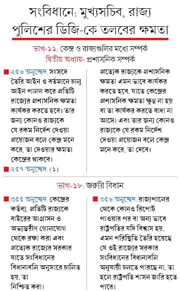সেই নির্দেশ মানা না হলে? কাশ্যপ বলেন, “সে ক্ষেত্রে কেন্দ্র বলবে, রাজ্যে সাংবিধানিক ব্যবস্থা ভেঙে পড়েছে। তখনই ৩৫৫ ও ৩৫৬ নম্বর অনুচ্ছেদের মতো জরুরি বিধান আসবে।” ৩৫৬ নম্বর অনুচ্ছেদে রাজ্যপালের রিপোর্টের ভিত্তিতে রাষ্ট্রপতি শাসন জারির ক্ষমতা রয়েছে কেন্দ্রের। তার আগে ৩৫৫ নম্বর অনুচ্ছেদ কাজে লাগিয়ে রাজ্যে অভ্যন্তরীণ গোলযোগ চলছে বলে হস্তক্ষেপ করতে পারে কেন্দ্র।