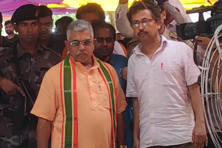 অনশনরত শিক্ষকদের থাকার বার্তা দিলীপ ঘোষের। —নিজস্ব চিত্র।