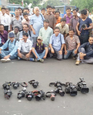 সল্টলেকে ভোট কভার করতে যাওয়া সাংবাদিকদের নিগ্রহের ঘটনার প্রতিবাদে সোমবার বিকেল ৩টেয় প্রেস ক্লাব থেকে মৌন মিছিল বের করেন সাংবাদিকরা। সমস্ত সংবাদমাধ্যমের প্রতিনিধিরা এই মিছিলে অংশগ্রহণ করেন। শুধু শহর নয় জেলার সাংবাদিকরাও এই মিছিলে পা মিলিয়েছেন। ডোরিনা ক্রসিংয়ের কাছে প্রিন্ট এবং ভিজ্যুয়াল মিডিয়ার চিত্র সাংবাদিকরা রাস্তার উফর তাঁদের ক্যামেরা রেখে প্রতিবাদ দেখান। মিছিলটি প্রেস ক্লাব থেকে মেয়ো রো়ড, ধর্মতলা এবং চৌরঙ্গি হয়ে ফের প্রেস ক্লাবে এসে শেষ হবে।