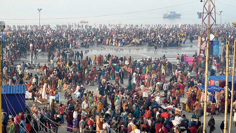 সংক্রান্তির আগের দিন, মঙ্গলবার ভিড় পুণ্যার্থীদের। ছবি: সুদীপ ঘোষ।