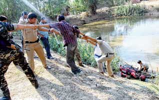লাভপুরের বামনি গ্রামে বোমা বিস্ফোরণের পরে প্রমাণ লোপাটের জন্য দুষ্কৃতীরা স্থানীয় পুকুরে
