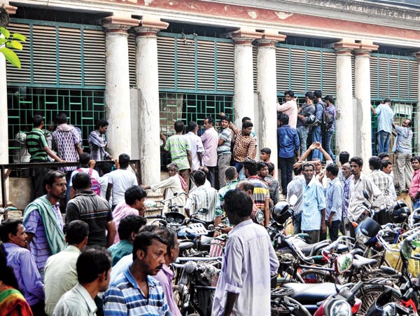 আদালতের বাইরে উৎসাহী মানুষজনের ভি়ড়। বুধবার। —নিজস্ব চিত্র।