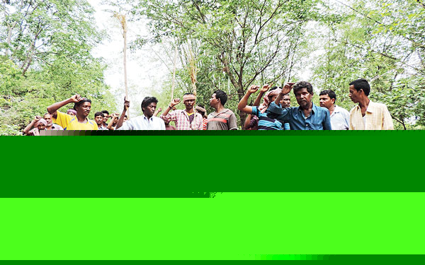 তালবাঁধ যাওয়ার রাস্তায় তাদের বিক্ষোভ। নিজস্ব চিত্র।