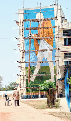 বেসরকারি পলিটেকনিক কলেজে দেওয়াল চিত্র আঁকা হচ্ছে।