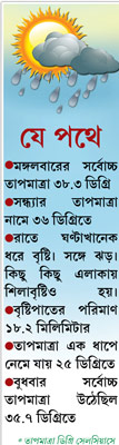এ দিকে চলতি বছরে গত মাসে একটিও কালবৈশাখী হয়নি জেলায়। প্রখর রোদে শুকিয়ে কাঠ হয়ে গিয়েছে জেলার জলাভূমি থেকে বনভূমি সবই। একের পর এক জঙ্গলে অগ্নিকাণ্ড ঘটছে। মঙ্গলবার সন্ধ্যায় জেলার বাঁকুড়া, বিষ্ণুপুর ও খাতড়া তিন মহকুমাতেই বিক্ষিপ্ত ভাবে বৃষ্টি হয়। মাত্রায় বেশি না হলেও এ দিনের বৃষ্টি শুখা পরিস্থিতিকে খানিক সামাল দিয়েছে বলেই মত সব মহলের। মঙ্গলবার সর্বোচ্চ তাপমাত্রা উঠেছিল বৃষ্টির পরে তাপমাত্রা প্রায় ১১ ডিগ্রি সেলসিয়াসে নেমে যায়।
