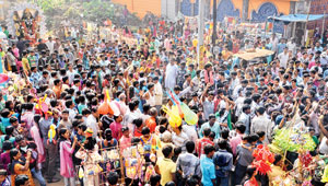 স্বর্ণময়ীতলায় কালী বিসর্জনের শোভাযাত্রা।—ফাইল চিত্র।