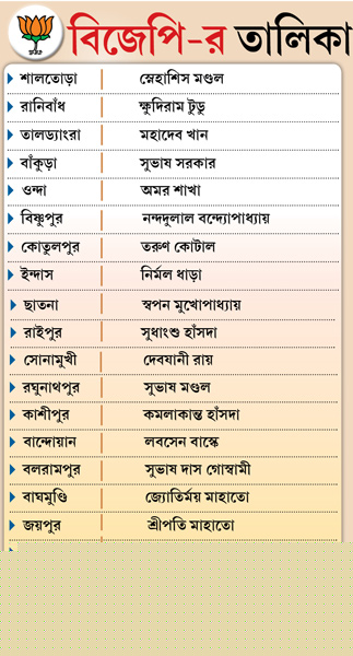 এক ঝলকে দেখে নিন বিজেপির প্রার্থী তালিকা