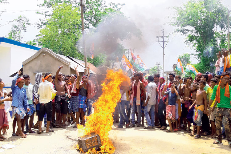 পুলিশের ভূমিকা নিয়ে প্রশ্ন তুলে তৃণমূলের বিক্ষোভ। নিজস্ব চিত্র