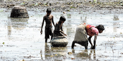 ঘোলা জলে। ময়ূরেশ্বরের কালীকাপুর গ্রামে মাছ ধরার ছবিটি তুলেছেন অনির্বাণ সেন।