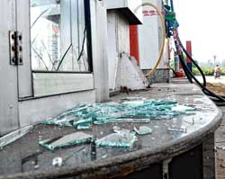 বিষ্ণুপুরে পেট্রোল পাম্পে ভাঙচুরের পরে। সোমবার তোলা নিজস্ব চিত্র।