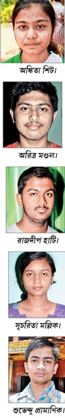 গোটা জেলা থেকে ১৪ জন মেধা তালিকায়। ৯ জনই জেলা স্কুলের। কিন্তু, প্রদীপের তলায় আঁধারের ছবিটাও যে রয়ে যাচ্ছে বাঁকুড়ায়! এত জয়জয়কারের মধ্যেও রাজ্যে সার্বিক পাশের হারের চেয়ে বাঁকুড়ার পাশের হার কমে যাওয়ায় চিন্তার ভাঁজ জেলার শিক্ষামহলে। জেলার অন্য স্কুলগুলির শিক্ষা পদ্ধতিতে কোথাও ফাঁক থেকে যাচ্ছে কি না, তা খতিয়ে দেখা দরকার বলেও মনে করছেন তাঁরা। এ বছর মাধ্যমিকে রাজ্যে সার্বিক পাশের হার ৮৪ শতাংশ। সেখানে এই জেলায় ৭৬.৫৮ শতাংশ, রাজ্যের থেকে অন্তত আট শতাংশ কম। ১৯টি জেলার মধ্যে পাশের হার অনুযায়ী ১১তম স্থানে রয়েছে বাঁকুড়া।