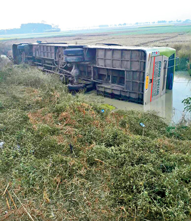 দুর্ঘটনাগ্রস্ত সেই বাস। নিজস্ব চিত্র।