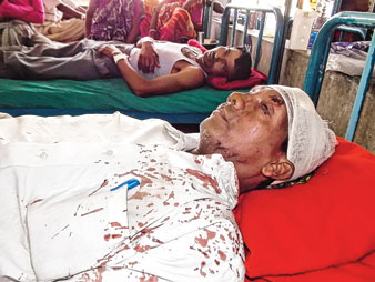 লাঠির ঘায়ে আহতেরা। বৃহস্পতিবার রঘুনাথপুর মহকুমা হাসপাতালে।
