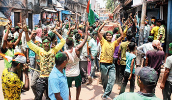 ঘণ্টাখানেক পরে সত্যিই বোঝা গেল, মধুসূদনবাবু নিছক কথার কথা বলেননি। সকাল ৯টার মধ্যেই মোটামুটি স্পষ্ট হয়ে গেল, ঝালদার মসনদে কারা বসছে। হাইস্কুলের দিক থেকে দুই যুবক বাজারের দিকে ছুট লাগিয়েছেন। মুখে চিৎকার, ‘‘আমরাই জিতছি!’’ কংগ্রেসের হাত পতাকার নীচে তখনই নাচ শুরু হয়ে গেল কর্মী-সমর্থকদের। আবির খেলায় মেতে উঠলেন তাঁরা।