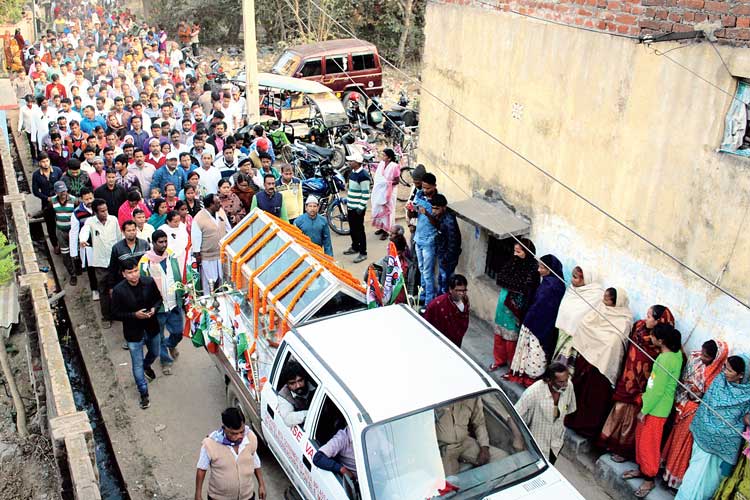 বাড়ির সামনে দিয়ে চলেছে শেষযাত্রা।