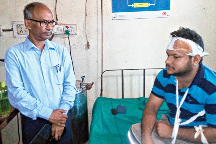 তৃণমূল নেতা-কর্মীদের মারে এক চিকিৎসক জখম হন বলে অভিযোগ। তাঁর পাশে জেলা মুখ্য স্বাস্থ্য আধিকার। মঙ্গলবার।