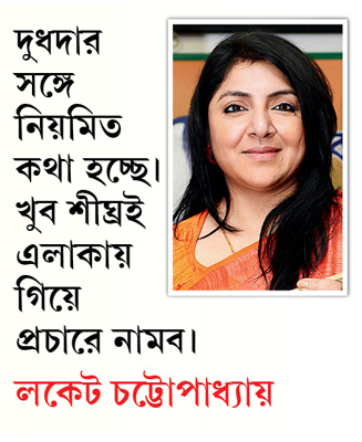 বিজেপি সূত্রের খবর, কেন্দ্র ও রাজ্য নেতৃত্বের একটা বড় অংশই চান বীরভূমে দুধকুমাকে মুখ করেই ভোটে লড়তে। সেই সূত্রেই নির্বাচনী বিজ্ঞপ্তি জারির আগে গত জানুয়ারির শেষ সপ্তাহে রূপাকে আসতে দেখা গিয়েছিল দুধকুমারের বাড়িতে। দুধকুমার ঘনিষ্ঠ এক নেতা বলছেন, ‘‘সোমবার রাতে কেন্দ্রীয় নেতৃত্বকে কলকাতায় আসার জন্য দুধদাকে বলে। দাদা যেতে রাজি ছিলেন না। শেষমেশ রূপাদিই ফোন করে মান ভাঙান। কলকাতা থেকে আসার গাড়ির ব্যবস্থাও করে দেওয়া হয়।’’ মঙ্গলবার সকালেই কলকাতার একটি হোটেলে পৌঁছে নেতৃত্বের সঙ্গে বৈঠকে বসেন দুধকুমার। সেখানেই তাঁকে ভোটে লড়ার অনুরোধ করা হয়। প্রাথমিক ভাবে অস্বীকার করলেও পরে রাজি হয়ে যান দুধকুমার। তাঁর নিজের বক্তব্য, জেলায় দলের একাংশ কেন্দ্রীয় নেতৃত্বের কাছে ময়ূরেশ্বরে (অতীতে দুধকুমার এখানেই প্রার্থী হয়েছেন) এক জন সেলিব্রিটি প্রার্থী দেওয়ার দাবি জানিয়েছিল। তার পরেই হঠাৎ লকেট চট্টোপাধ্যায় তাঁর কাছে জানতে চান, ময়ূরেশ্বরে তিনি (লকেট) প্রার্থী হলে কেমন হবে। ‘‘আমি বলেছিলাম, কোনও অসুবিধা নেই। আমার সাধ্যমতো নিচুতলায় ওঁর জন্য ভোটে খাটব। মঙ্গলবার সে কথাই আমি নেতৃত্বকে জানিয়েছিলাম। কিন্তু ওঁরা প্রসঙ্গ এড়িয়ে আমাকে ভোটে লড়া নিয়ে কথা বলেন। দলের নির্দেশ মেনে আমি সম্মত হয়েছি, এটুকুই বলব,’’—দাবি দুধকুমারের। যেখানেই দায়িত্ব দেওয়া হোক, সেখানেই লড়বেন বলে জানিয়েছেন দুধকুমার।