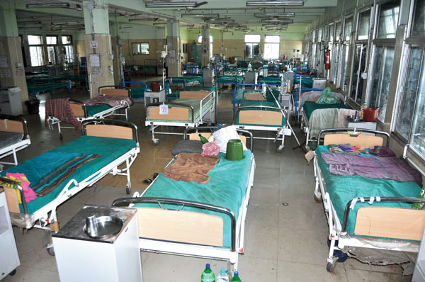 অনেককে হাসপাতাল চত্বরেই শুইয়ে দেওয়া হয়।