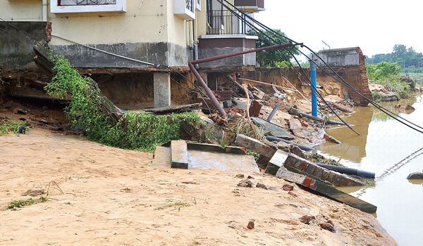 রাতের সতীঘাটে চোখ টানত আলো ঝলমলে আবাসনটি। অনেকেই লক্ষাধিক টাকা দিয়ে ফ্ল্যাট কিনেছেন গন্ধেশ্বরী নদী লাগোয়া এই এলাকায় থাকবেন বলে। কিন্তু, বছর ভর যে নদী নামেই নদী, চেহারা নালার মতো, নিম্নচাপের এক বৃষ্টিতেই সেই নদীর রোষে পড়েছে লাগোয়া আবাসনটির একাংশ। নদীর জলের তোড়ে বেশ ভাল রকম ক্ষতিগ্রস্ত হয়েছে বিল্ডিংয়ের একাংশ। এই অবস্থায় ইতিমধ্যেই যাঁরা আবাসনে ফ্ল্যাট কিনে থাকতে শুরু করেছেন, তাঁদের বড় অংশই প্রমাদ গুনছেন। আবাসনটি আদৌ বৈধ কিনা, তা নিয়েও খোঁজ নেওয়া শুরু করেছে জেলা প্রশাসন।