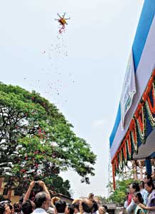 ড্রোন থেকে পুষ্পবৃষ্টি।