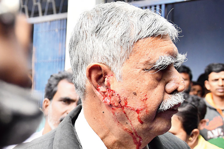 কামড়ে জখম আইনজীবী। রামপুরহাটে। —নিজস্ব চিত্র