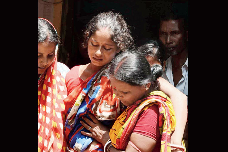 মৃত বাপ্পা বাউড়ির শোকার্ত স্ত্রী। ছবি: শুভ্র মিত্র