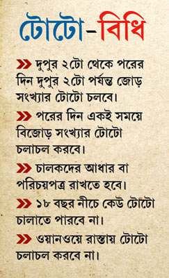 রাস্তার যানজট কমাতে জোড়-বিজোড় সংখ্যা অনুযায়ী শহরে টোটো চলাচল করবে আজ মঙ্গলবার থেকে।