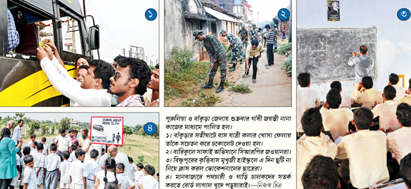গাঁধী জয়ন্তী নানা ভাবে পালন করলেন পুরুলিয়া ও বাঁকুড়া দুই জেলার মানুষ। কোথাও স্কুল, কলেজ কিংবা প্রশাসনের বিভিন্ন দফতর কোথাও আবার রাজনৈতিক দলও নেমে পড়ল।