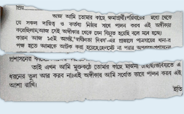ভরদুপুরে বাড়িতে পিওন আসতে দেখে প্রথমটায় অবাক হয়ে গিয়েছিলেন আশাপূর্ণাদেবী। পিওনের হাতের থেকে চিঠি নিয়ে তো আরও অবাক। ঘণ্টা খানেক আগেই যে ছেলে ‘আসছি মা’ বলে অফিসে বেরিয়ে গেল, সেই চিঠি লিখে পাঠিয়েছে! এমনটা কী করে হয়? খাম খুলতে অবশ্য নিশ্চিন্ত হওয়া গেল। দিন দু’য়েক আগের সেই চিঠি থেকে জানা গেল, হেলমেট না পড়ে মোটরবাইক চালাতে গিয়ে শ্রীমান পুলিশকর্মীদের সামনে পড়ে গিয়েছিলেন। আর তার পরে পুলিশের সামনেই মাকে চিঠি লিখে প্রতিজ্ঞা করেছেন, এমন কাজ আর করবেন না। বাড়ির শোরগোল শেষ হল স্বস্তির নিশ্বাস দিয়ে।