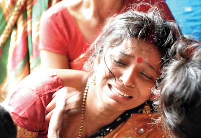 কান্নায় ভেঙে পড়েছেন মৃতের স্ত্রী অর্চনা আইচ।