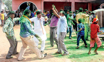 পুরভবনের সামনে দিয়ে চলে গিয়েছে পুরুলিয়া-রাঁচি রাস্তা। এ দিন শপথ উপলক্ষ্যে চড়া রোদ মাথায় নিয়েই সেই রাস্তায় সকাল থেকে কংগ্রেসের কর্মী-সমর্থকেরা ভিড় করেছিলেন। মাইকের গানে নাচের সঙ্গেই চলে মিষ্টিমুখ।