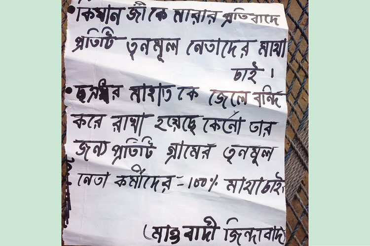 উদ্ধার হওয়া মাওবাদী পোস্টার। —নিজস্ব চিত্র